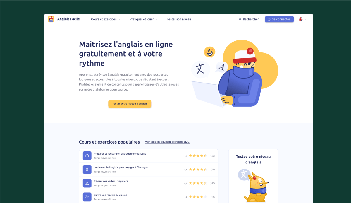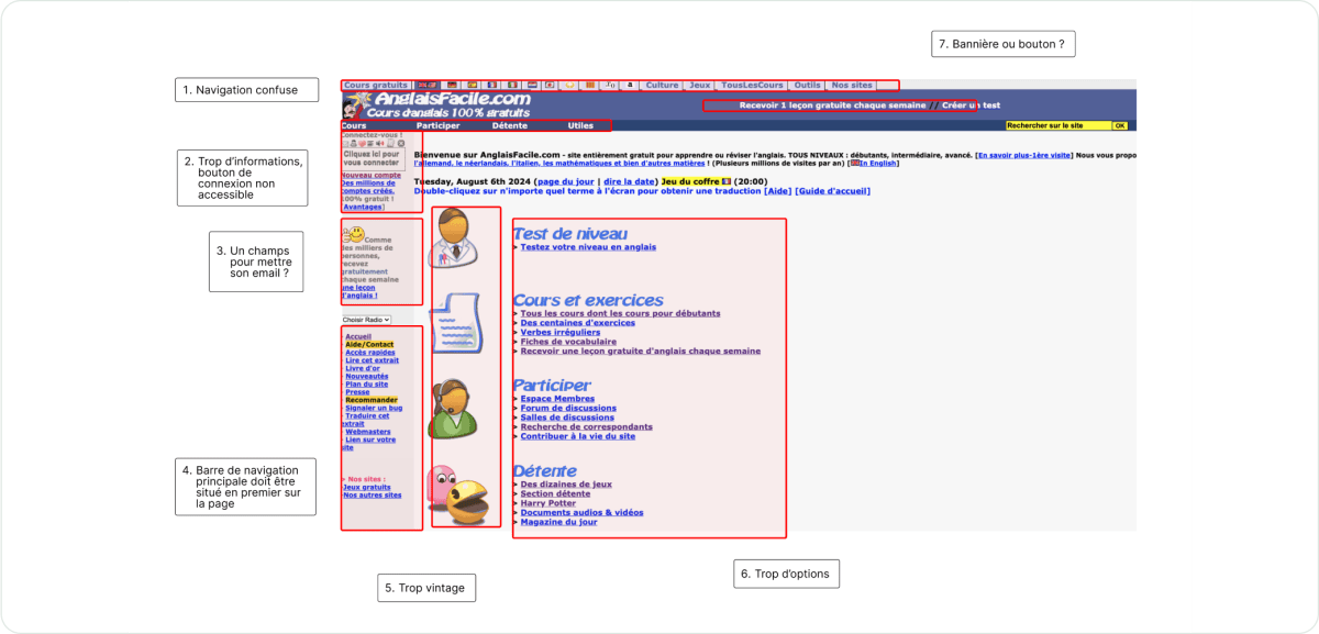 Dans cette étude de cas, je me suis attaquée au site communautaire Anglais Facile, qui propose des cours en ligne gratuits. Mon objectif : améliorer l’expérience utilisateur pour rendre le site plus accessible et attractif.