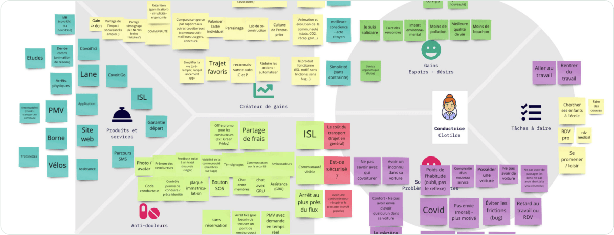 Au cours d’ateliers utilisant le Business Model Canvas avec les équipes internes, nous avons élaboré des solutions destinées à renforcer la confiance des utilisateurs dans la fiabilité du covoiturage et la sécurité de leur expérience. Suite à ces sessions, des mesures ont été mises en place pour accroître la fréquentation des lignes de covoiturage.