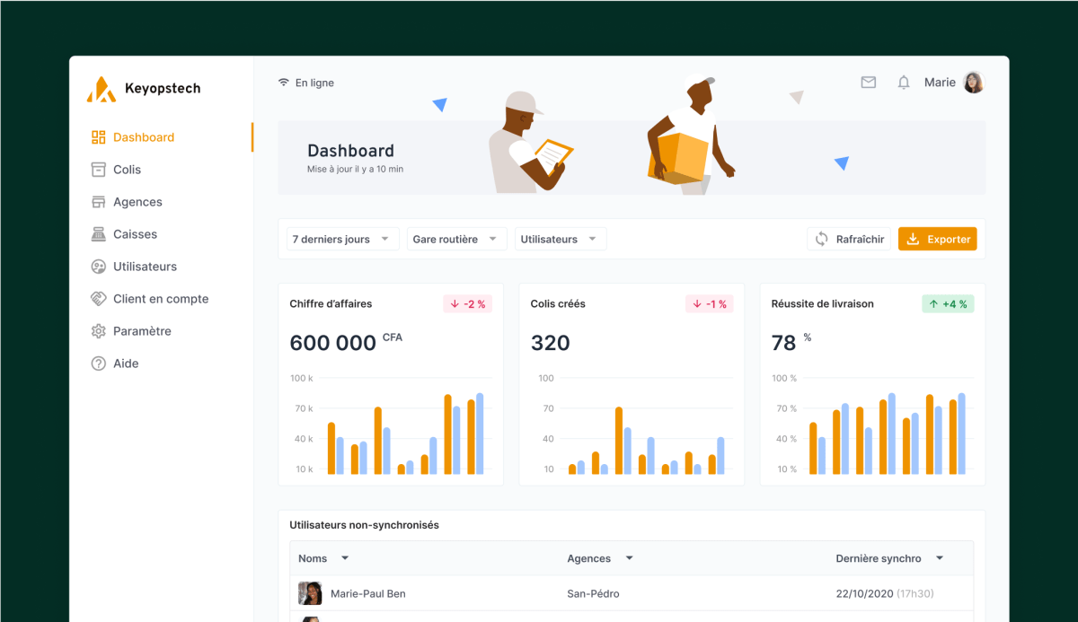 Le résultat est une application plus fluide et rapide, avec des clients satisfaits de la qualité du produit et de notre collaboration. Les modifications apportées à l’application mobile ont permis d’augmenter les ventes de colis de 22 %. De plus, le logiciel SaaS innovant a réussi à attirer de nouveaux clients. Initialement vendu exclusivement en Côte d’Ivoire, nous avons réussi à nous étendre au Sénégal et au Mali.